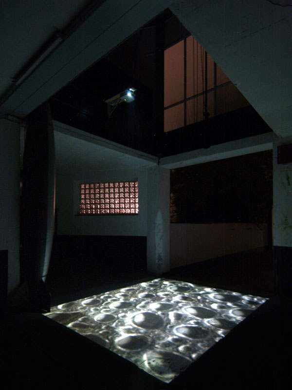 Jörg Oswald, LUB: Vertikal-Videoprojektion auf Asphalt, Schwarzbach-Galerie 2007