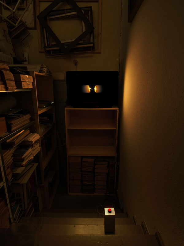 Jörg Oswald, lumi love: Rauminstallation mit Videomonitor, Schwarzbach-Galerie 2007