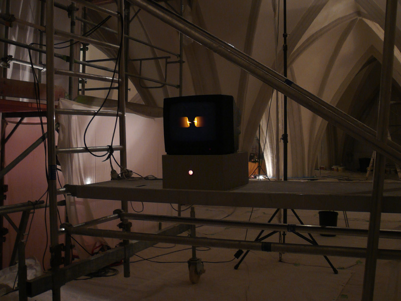 Rainer Düvell und Jörg Oswald arbeiten mit der Wechselwirkung von historischer Inszenierung des Kirchenraumes und zeitgenössichen Interventionen durch Installationen und Videoarbeiten.